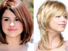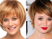 - Round face It will take a little “stretch”, so it is recommended to pay attention to oblique or elongated bangs. Hairstyles with the effect of lengthening, where there are curls fitting the face, small waves and hair length do not exceed the level of the cheekbones, will do.