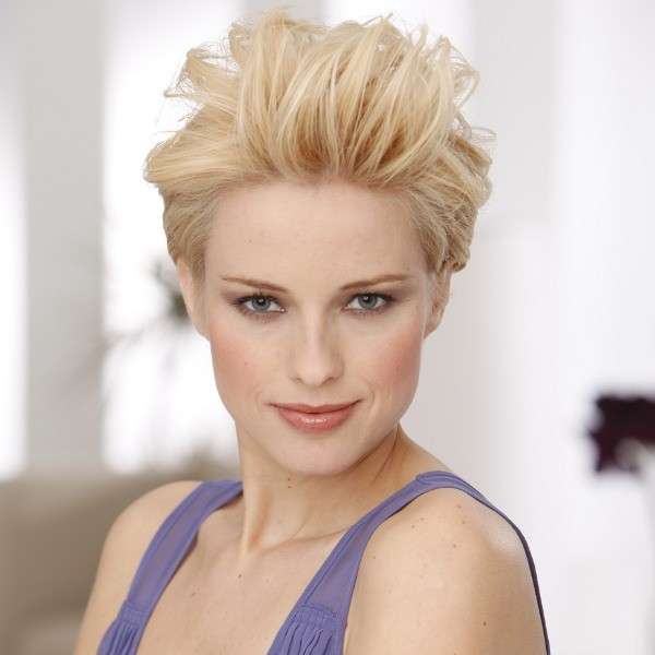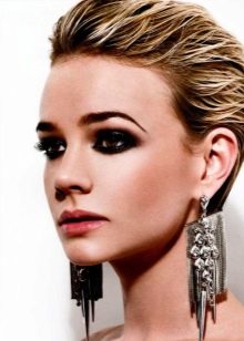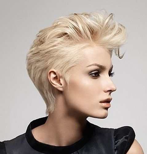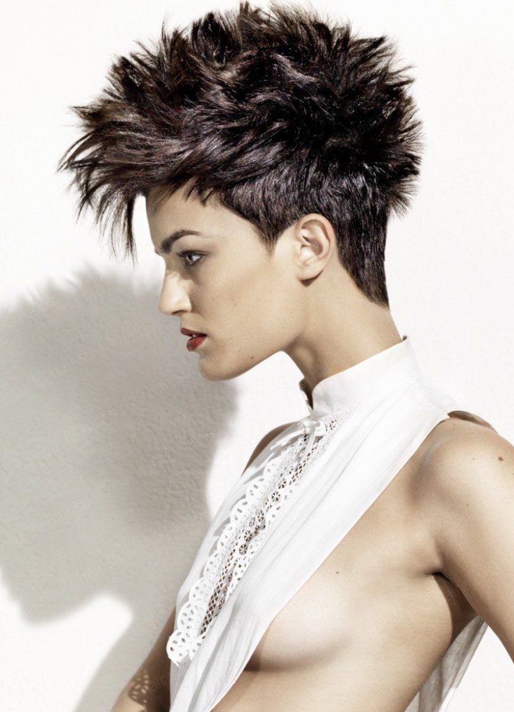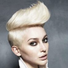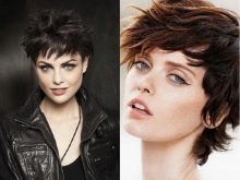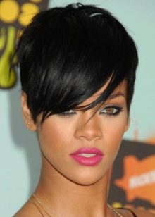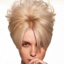 Often you can meet girls who complement haircuts with long bangs or pixie Mohawk. It looks funny and with this step you can stand out from the crowd. To create an image, you need a gel with a strong fixation, which is applied to the curls. In a position where the head is tilted forward, you should make a pile of wet hair from the top of the head. Then the hair is dried with a hairdryer and fixed with a strong hold lacquer.