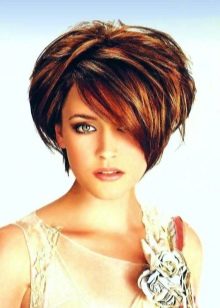 - Short textured car can be of two types. Some girls choose a fully graduated haircut, where there is a perfectly profiled shape. And also it is possible to allocate separate sites of a hairdress: the termination of curls or front zone The dignity of such a square is easy negligence, which does not require long stacking.