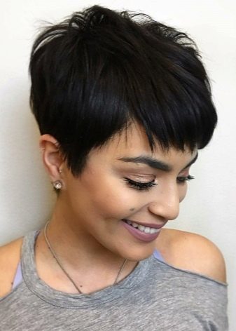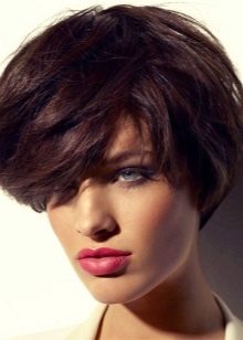 This is a very short haircut with short bangs. It differs from the square and bob in that in the temporal region and on the back of the head the head of the hair should be much shorter compared to the crown. This option is suitable for girls with a little face, as well as women of fashion with unusual and large features. The hairstyle emphasizes plump lips with expressive eyes, emphasizing the face.