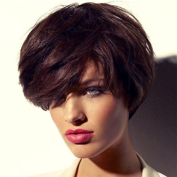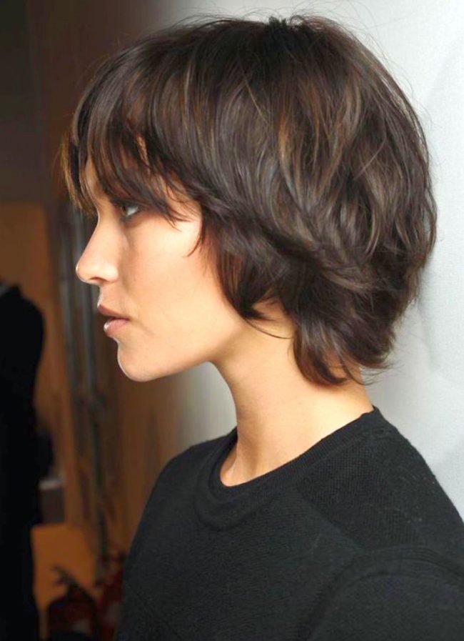 Bangs in short haircuts can be subjected to different experiments: it is straightened, ruffled, laid on its side.