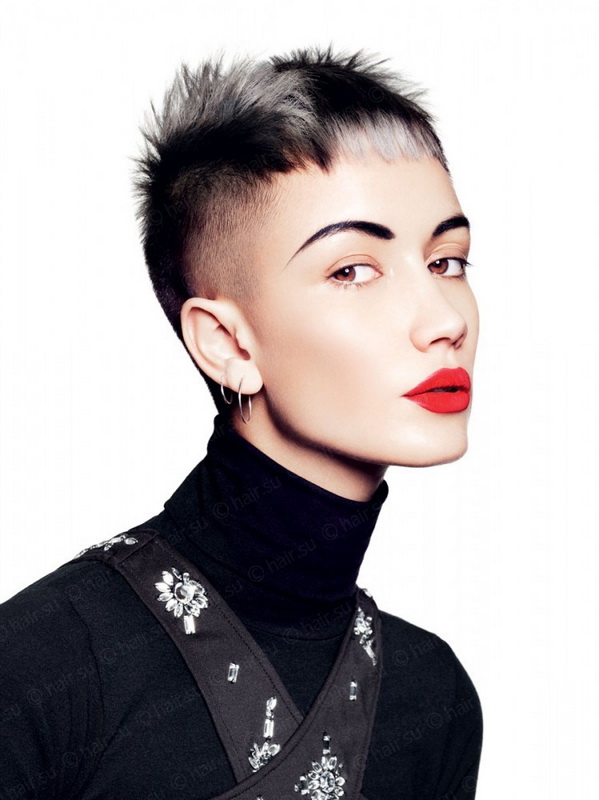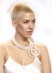 - Ultrashort. Not every woman of fashion will decide on such a bold step. And not all of these haircuts and go: if you are the owner of curvy shapes, large ears or a big nose, then from such experiments it is better to refuse. The length of the hair can be, in general, practically removed, leaving the "hedgehog", and leave a couple of centimeters. Creative shading is often performed on ultrashort haircuts, patterns are shaved.