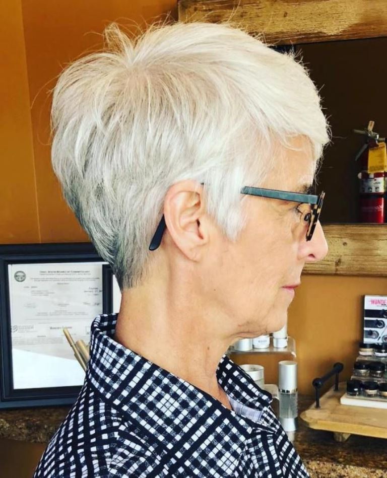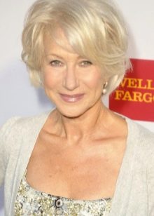 In an elegant age, even the shortest haircut requires very careful handling. You should not chase after youth, there are women's hairstyles, in which open neck and ears look quite appropriate. For example, an elongated version of the “pixie” hairstyle with an original asymmetric bang helps to add volume. It is equally good in blond shades and in bright ginger or red. And in combination with the noble gray hair such haircut gives the effect of rejuvenation.