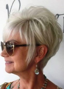 Tracking current trends helps pick up trendy haircuts for seniors today. Among the trends of recent years, bob haircuts can be noted - graduated, with an interesting line of the back of the head or in a shortened version with asymmetrical bangs. For the bold and self-confident lady, you can recommend the “garcon” hairstyle with the lack of clear geometry, minimum length, accentuated temples.