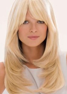 In the concept of the ladder is also permissible to include bangs, both direct and oblique type. The first tier in this case will be determined by the length of the bangs. It should go as smoothly as possible into the side strands.