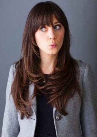Often, long-haired girls use a similar haircut for self-expression. In combination with a beautiful hair color is obtained a hairstyle, which gives an image of uniqueness, as much as possible reflecting the personality of the young lady. It is important that women of almost any age can find a suitable option.