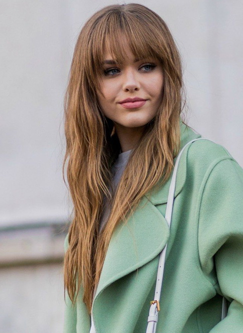 Often the most relevant element looks just below the line of the eyebrows. At the same time, it is not necessary to make bangs very thick.