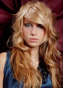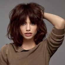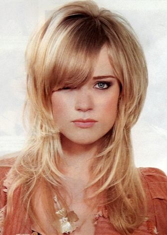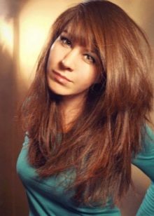 Girls with triangular faces when choosing a hairstyle should pay attention to your chin.If it is too massive and long, it is better to create a multi-layer haircut of medium length with the obligatory filiration of the front strands from the cheekbones to the tips. The best option - "ladder". Owners of short hair need to choose a smooth styling with strands adjacent to the chin. A long bang, which can be made oblique if desired, will work well for such a laying.