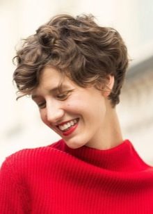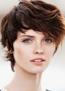 Pixie visually reduces hair volume. The neck and ears, as in garcon, remain open, the length focuses on the crown, nape and bangs. "Pixie" is characterized by general negligence. Hairstyle is better for girls with delicate features.