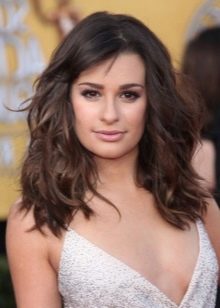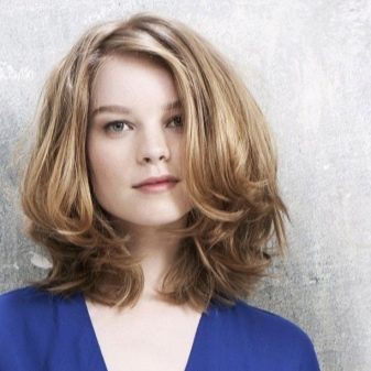 Fluffy hair does not always mean curly curls, which is even more difficult to handle. The combination of too short fluffy and at the same time excessively curly hair will appeal to far from everyone. Therefore, you are best suited elongated version of medium haircuts with preservation of the crown volume and the gradual thinning of the strands to the tips. Besides, girls with small curls will not fit asymmetrical shoulder-length haircuts.