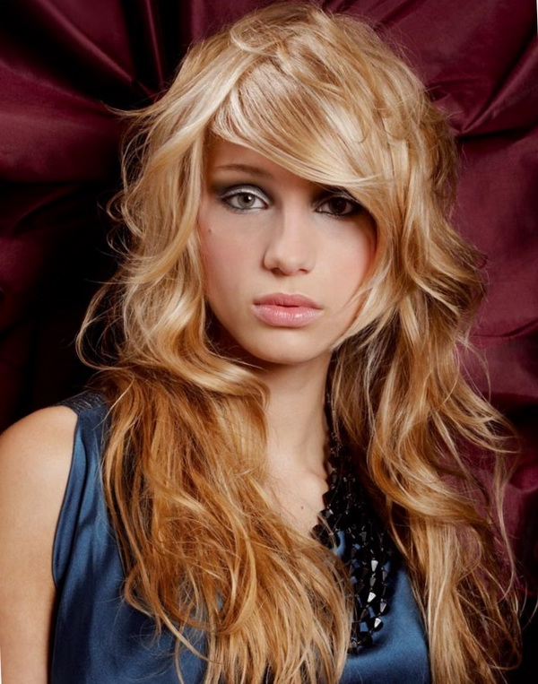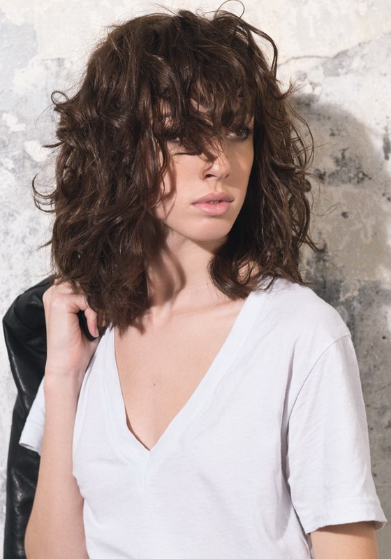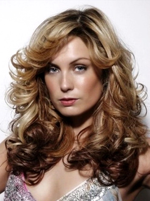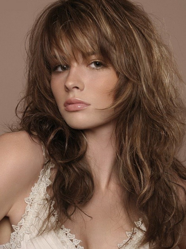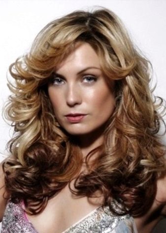 On long curls will look good smooth cascading transitions. So you can disguise the disobedience inherent in fluffy curls and give them a lush and at the same time thick look. The most famous and fashionable haircuts for long fluffy strands are “ladder”, “rhapsody” and “Aurora”.