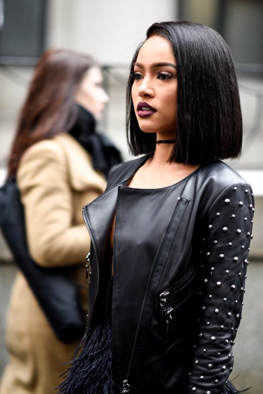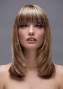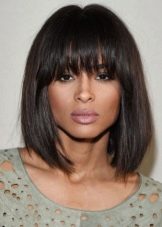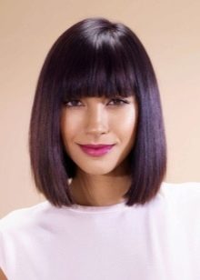 A classic smooth bang helps to emphasize clear geometry. The hairstyle does not demand special skills from the master or application of non-standard approaches. One has only to trim the hair on a flat line, in a similar way to do with bangs. If the hair is thin, and you want to add volume to it, then you should give up the haircut. It is also contraindicated for girls whose hair is prone to cross-section. The edges will not keep the line so clearly.