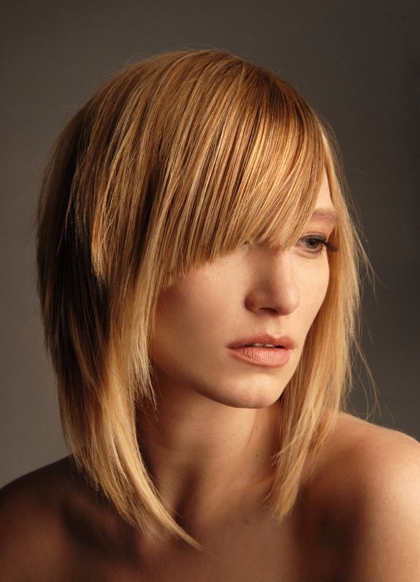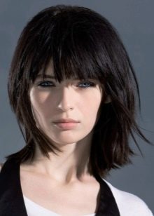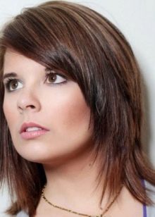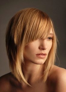 It is ideal for haircuts with graduation or type of cascade. Different lengths of strands will be emphasized by the inclination of the fringe itself. With this option bangs You can hide some flaws, but still the face will remain fairly open.