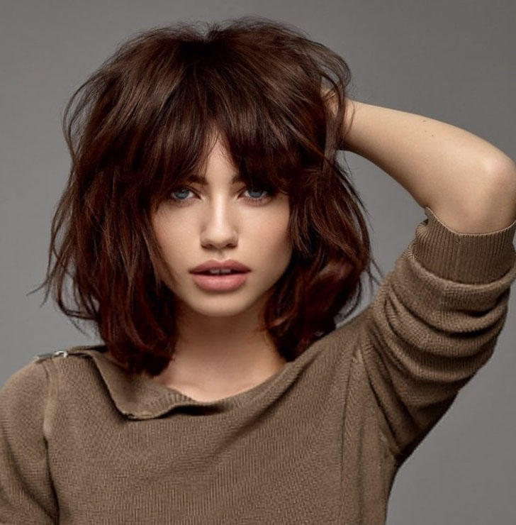 Another option could be step cutting of the strands near the forehead. In this case, the transition from one length to another will be more noticeable. But when laying (it will have to be curled with brushing or ironing) the curls will look very organic, gradually going down along the face.