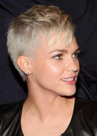 - The undoubted simplicity of styling, or its practical absence, as many haircuts for very short hair look elegant with all its naturalness and negligence. It is enough to ruffle clean hair - and the hairstyle is ready. For lovers of more complex hairstyles or for a solemn occasion, there are more complex styling haircuts using modeling and fixing tools.