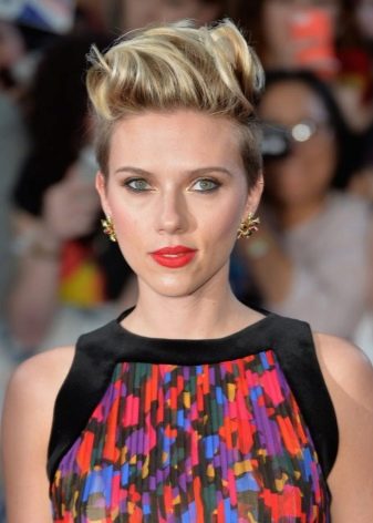 - Short haircut with a complex styling: waves, curls, bouffant. The image changes dramatically.