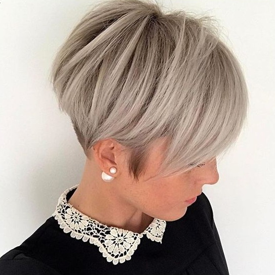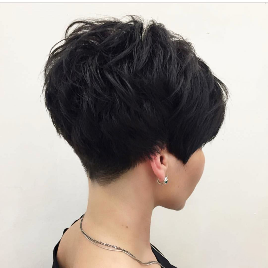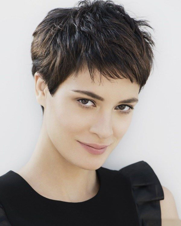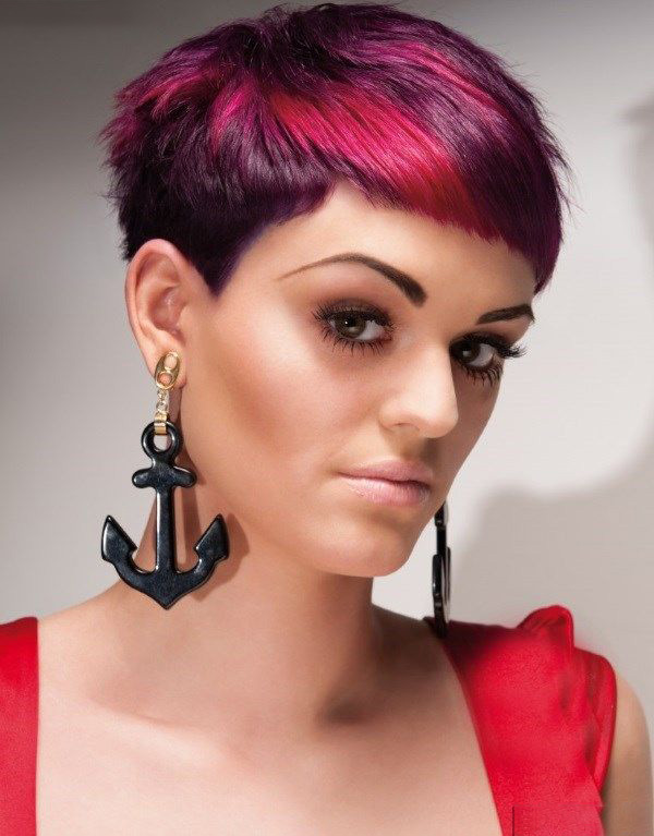 - Amazing pixie perfectly suits girls with delicate features. For this haircut is well suited clear staining in bright colors. Platinum blonde or brunette with blue-black hair looks gorgeous.