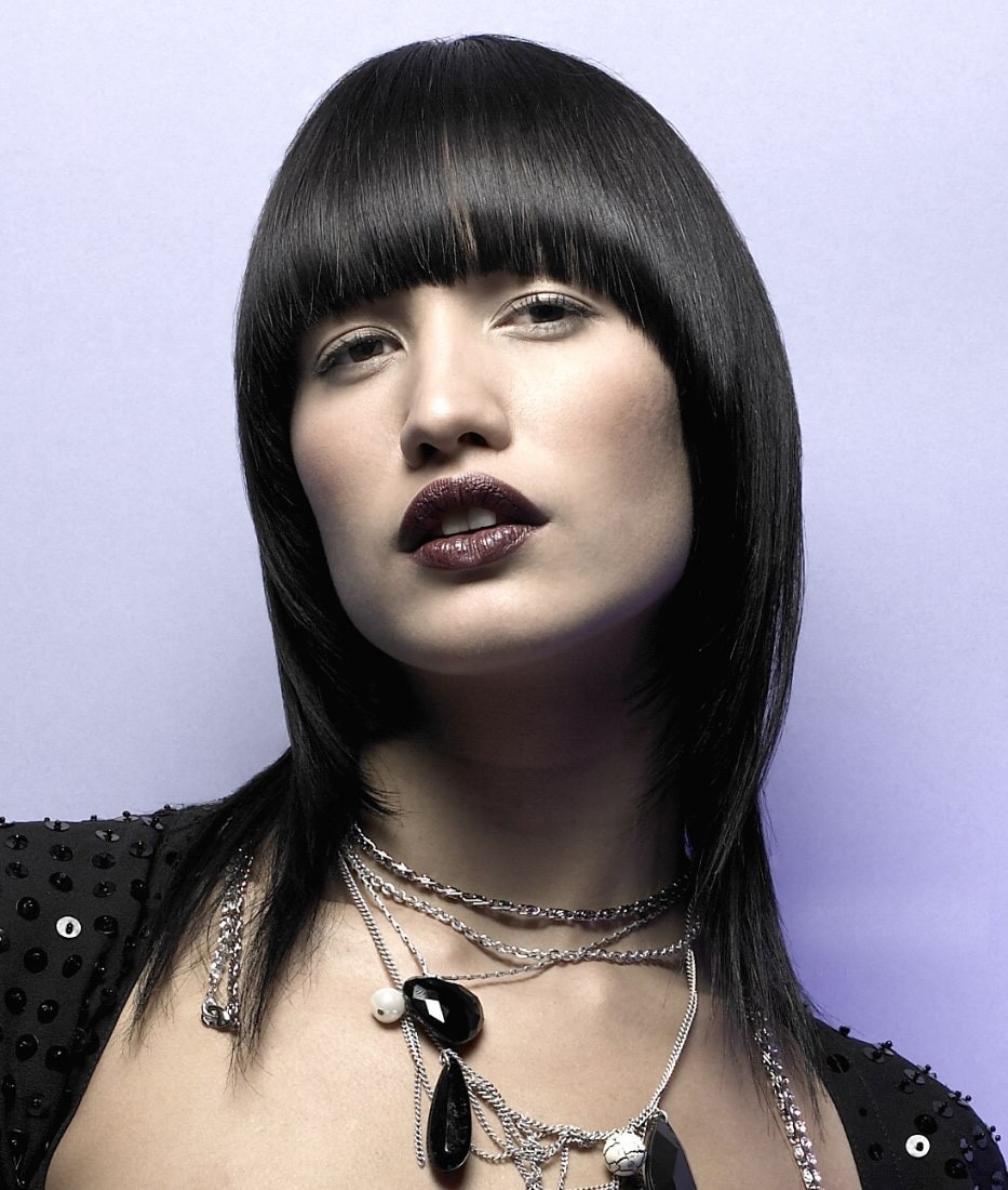 The main difference in this hairstyle is the presence or absence of bangs. A haircut of this type without bangs also has smooth lines and transitions, but the front hair is cut slightly longer than the tip of the nose. A stylish version of this haircut will be a side parting on the front. It will help to hide a slight asymmetry of facial features. Haircut with bangs also has a significant length of hair in front. Classic bangs page should reach the eyebrows. Its thick straight shape helps to emphasize the depth and expressiveness of the look. There is a difference in the length of the hair: