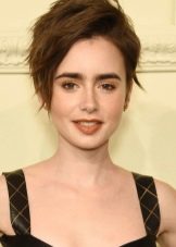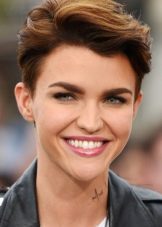 Pixie cut can be very extravagant and variable. For example, many stars bring variety to this haircut, complementing it with a shaved temple. Pixies are often worn with a mohawk and a vertical pile. This hairstyle looks very outrageous and is suitable for a party in the style of rock.
