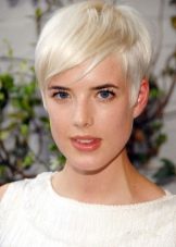 Owners of beautiful facial features and a small forehead can afford to wear a short pixie hairstyle with an open forehead, that is, without a bang. But the mini-bangs, if desired, can be made "feathers." The effect is amazing.