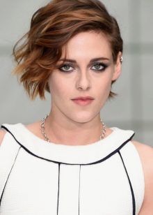 No less interesting looks smooth laid haircut pixie. This option is often chosen by the stars to enter the red carpet. True, this hairstyle is often complemented with decorative invisible hair color.