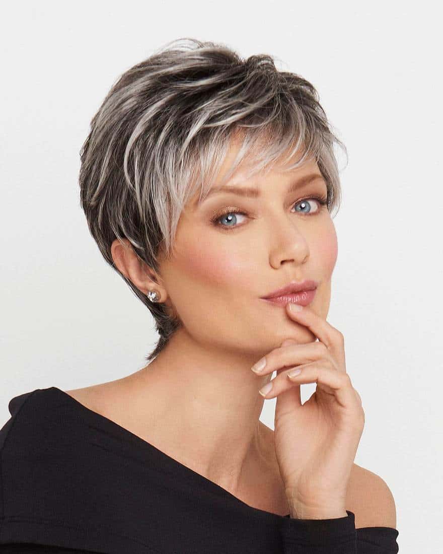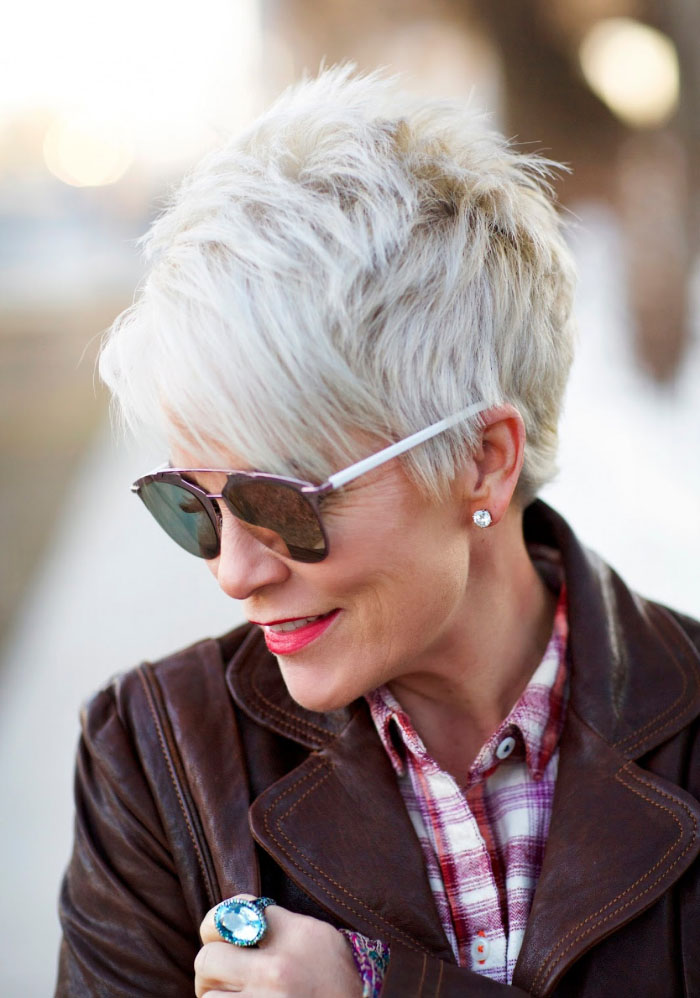 For owners of gray hair who want to emphasize their natural color, you can advise the youth bob at an average length. Interesting will also be a short classic version of a pixie haircut with torn bangs. The combination of enthusiasm and gray hair will be completely harmonious in this image.