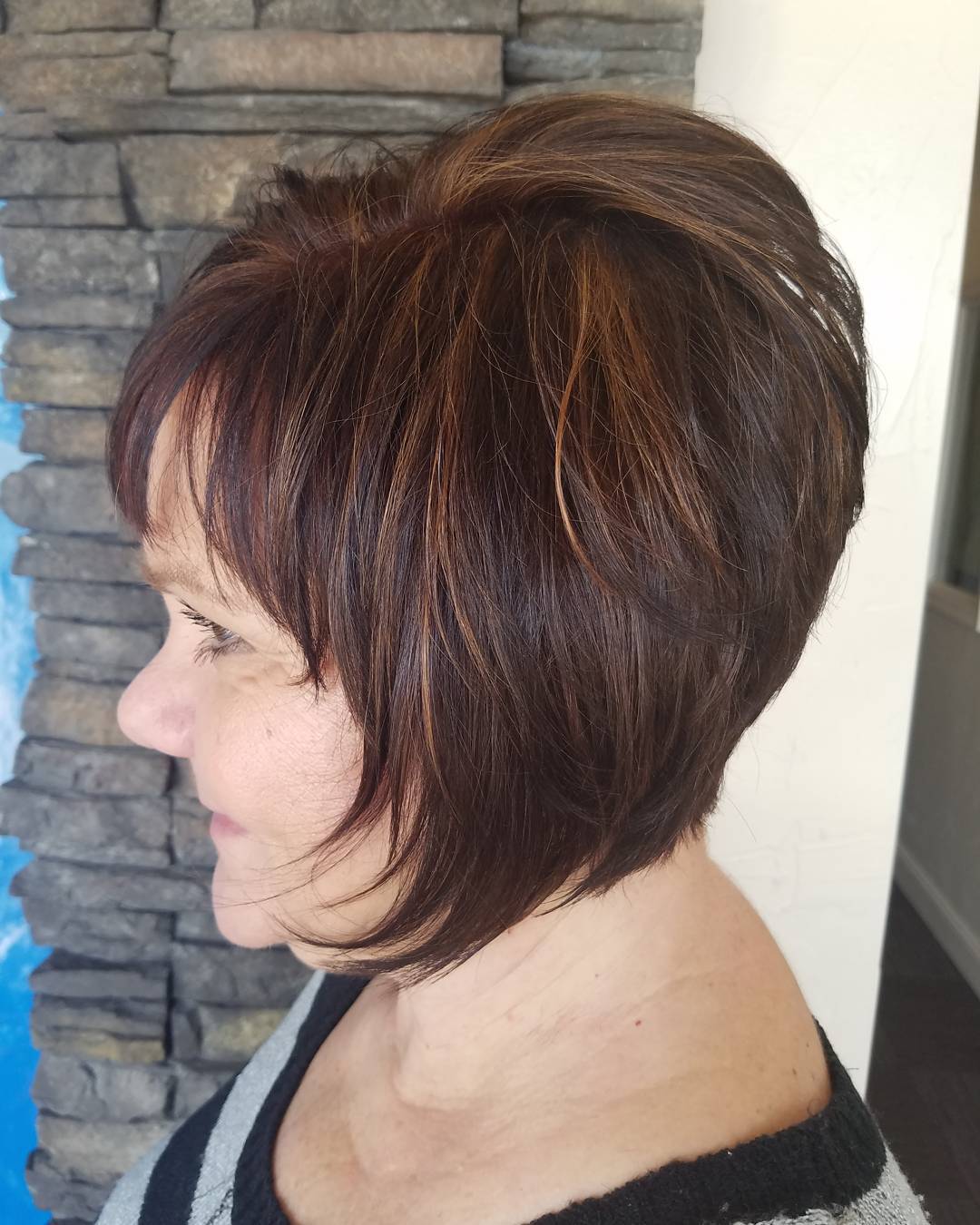 You can give preference to the length of the shoulder blades with an interesting cascade and volume-giving haircut, if the hair has a healthy, well-groomed appearance. Age-related changes often become noticeable not only in gray hair, but also in mimic wrinkles and change in complexion.