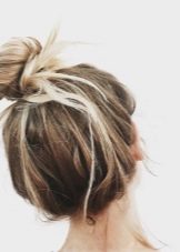 - Short top, with a long bangs, side strands and curls at the back of the head. Here, the entire emphasis is placed exactly on the sticking hairs in the center of the head.