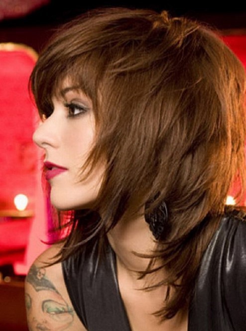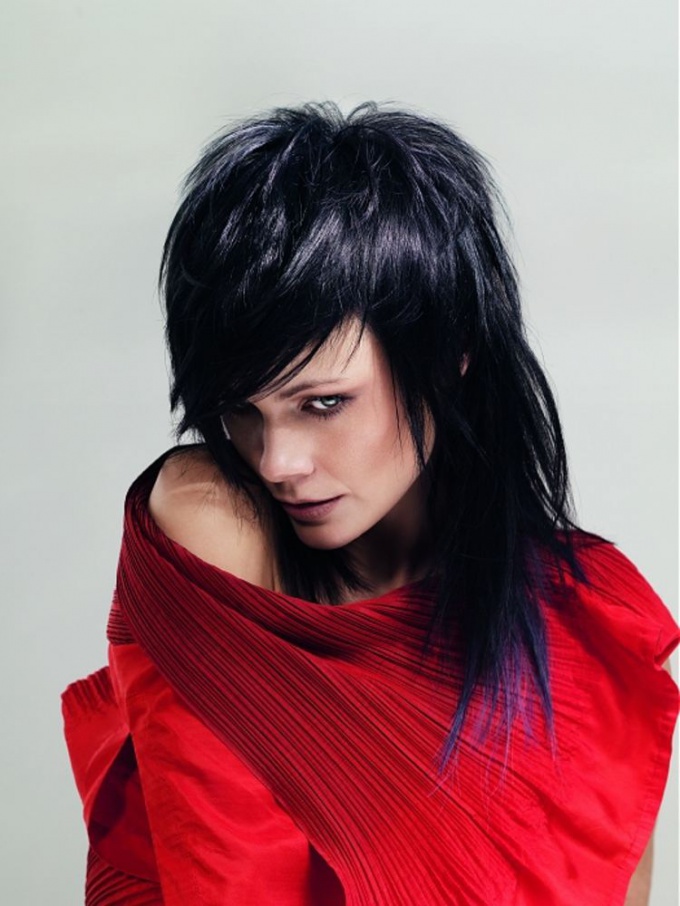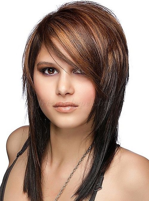 - Long bottom and whiskey in combination with a short crown and bangs.