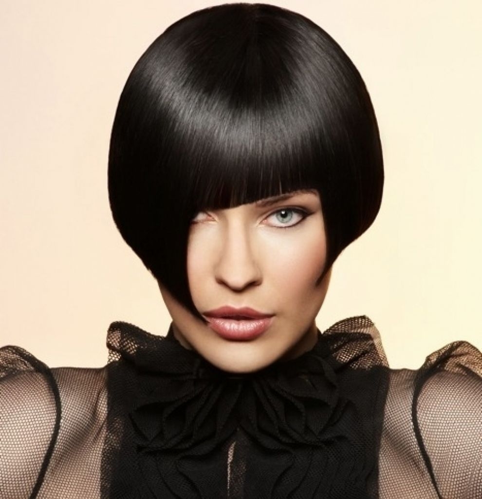 - Graphic bangs - it has an even and clear cut, it can be both above and below the eyebrows. It should be avoided by women with an oval or round face type, as well as owners of curly locks. In the first case, the face will look much narrower, and in the second, you will have to exert a lot of effort to regularly level the hair.