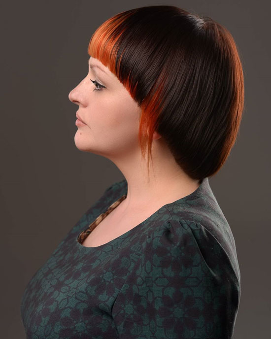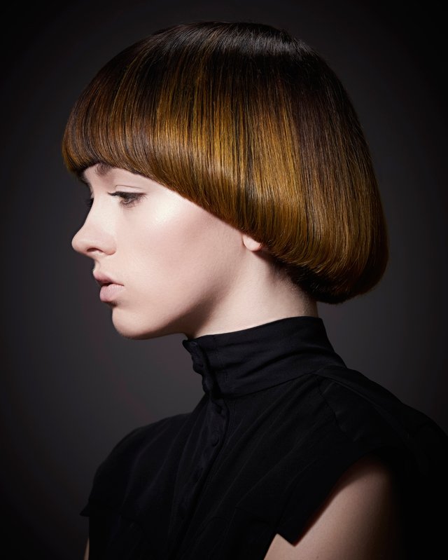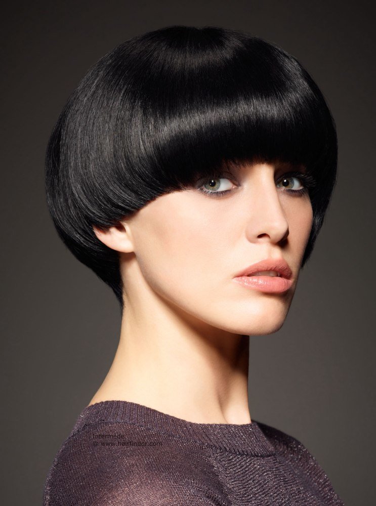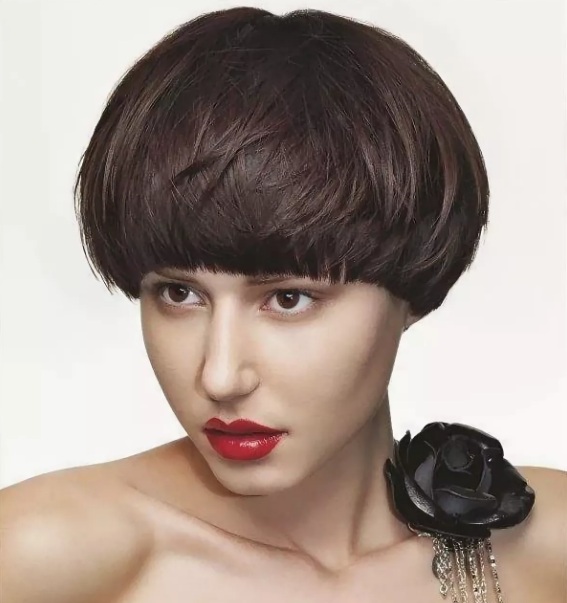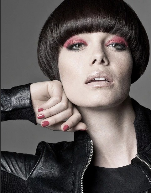 - Haircut resembles an elegant hat.Eometrically correct round shape.