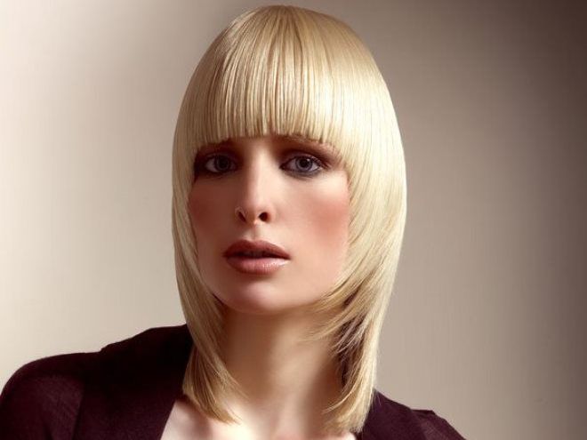 The most successful option sesson on medium hair will be a graduated type with oblique or arched bangs.