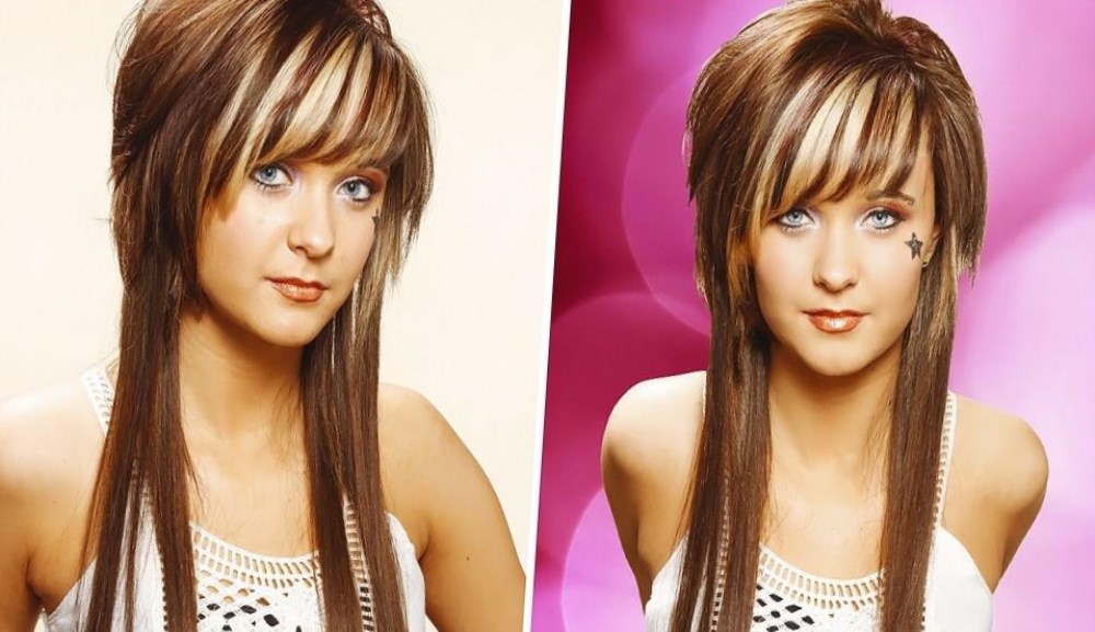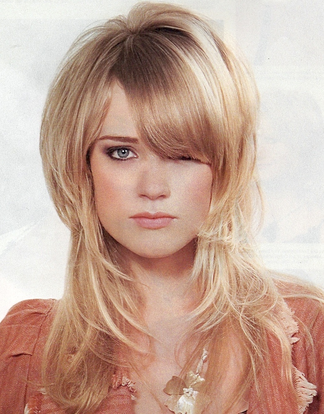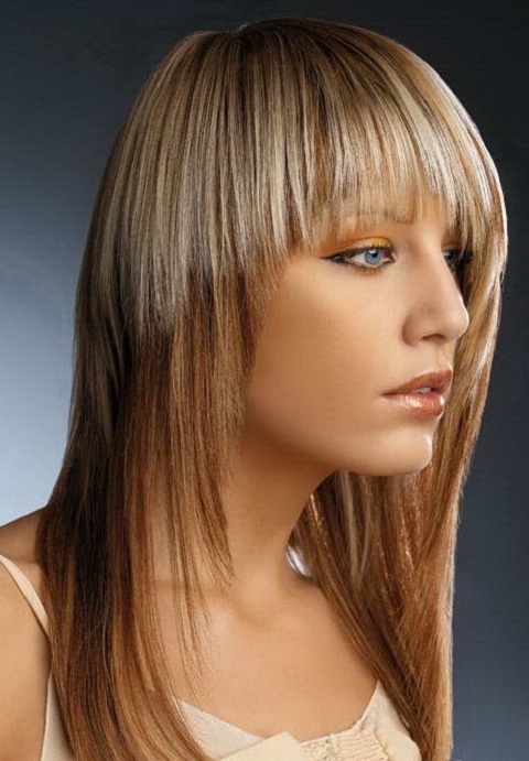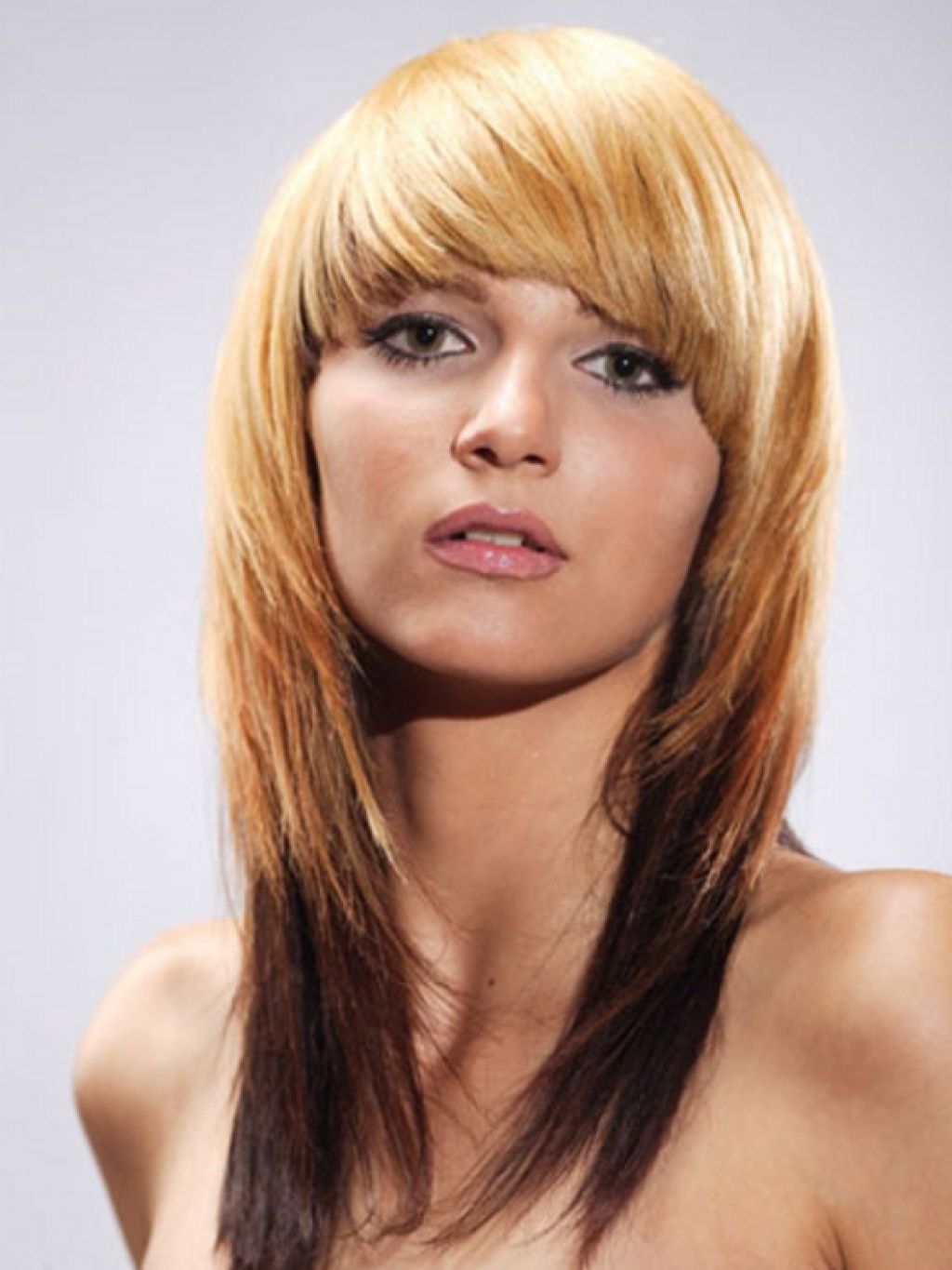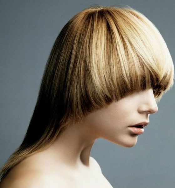 - long - allowing to hide the lack of proportions in facial features, visually reduce the high forehead, and in addition, she is able to “take” from the young lady for several years, rejuvenating her, making her more fresh and attractive.