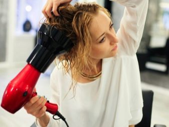 - No need to run a hairdryer at the highest power level - hot air will dry the hair very quickly. Instead of volume curls, you get a completely different result. Be sure to ensure that the air jet was not hot, but moderately warm.