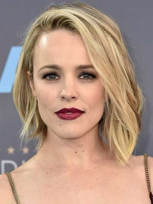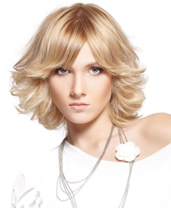 - Women who have by nature round faceWith the help of a well-chosen medium hairstyle, you can effectively divert attention from a rather wide forehead, plump cheeks. A person can visually appear more elongated and even a bit aristocratic. That is why stylists do not advise combing the hair over your forehead, opening your ears for once or wearing volumetric curls. It is desirable to choose a hairstyle that will be characterized by a slightly raised occipital part.