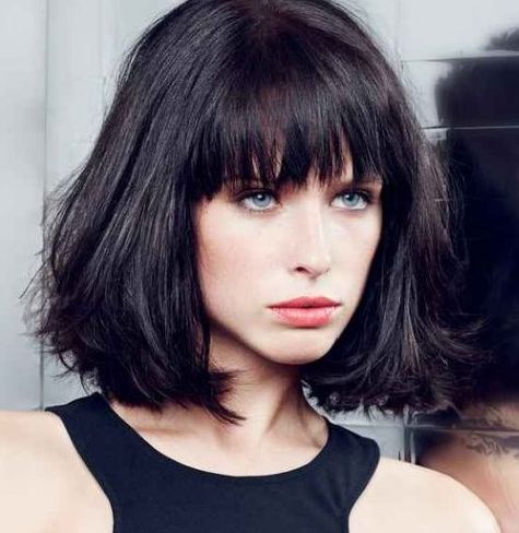 - If a lady by nature the forehead is rather high and the chin is sharp, then, most likely, the face has a triangular structure. In these circumstances, the visual emphasis of the hairstyle should not be on the cheekbones, but on the jaw. You can turn to thick and smooth bangs to the eyebrow line. But it must be borne in mind that the strands collected above the line of the forehead or removed back will be inappropriate here.