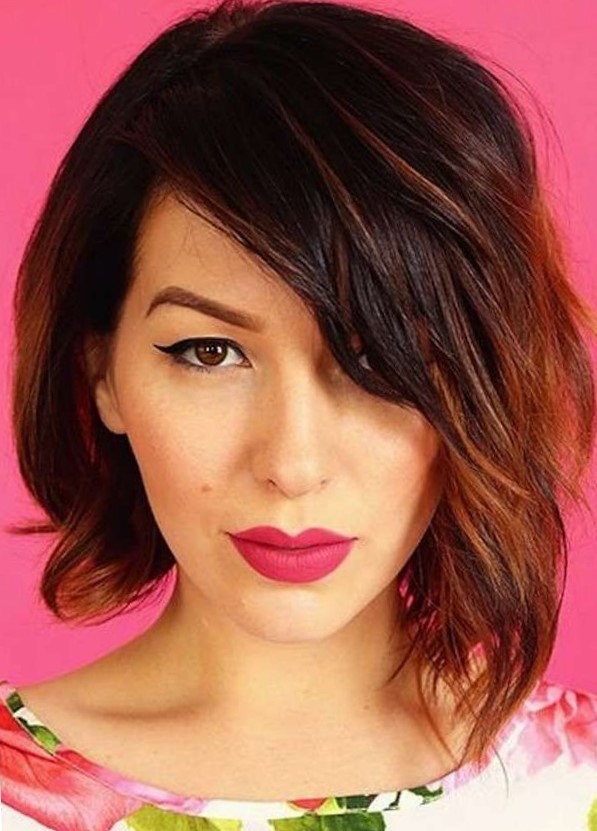 - Chubby young ladies fit elongated bob for wavy strands, asymmetrical bob, but without bangs, graded square with sparse elongated bangs, cascade.