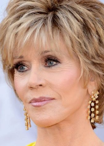 - Incredibly popular haircut bean in one of its forms will help not only to hide the age, but also plump cheeks. Raising the top of the hair and opening the face, you will demonstrate self-confidence and open all the interesting features of the face. Ideal cuts on both cheeks absolutely do not need styling and give the image of tenderness.