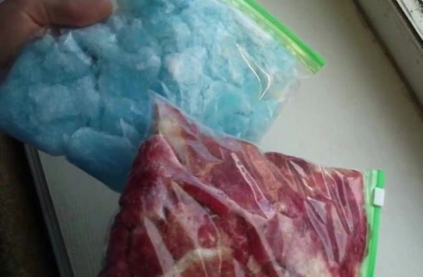 In the package with the latch you need to put ice cubes, close the package. The second package will serve as protection against leakage, so the first package will have to be put in one more.