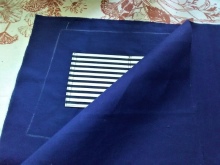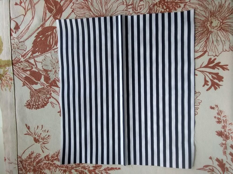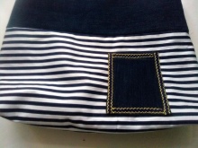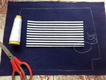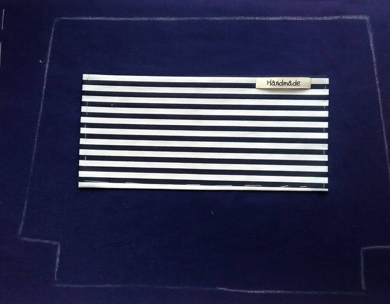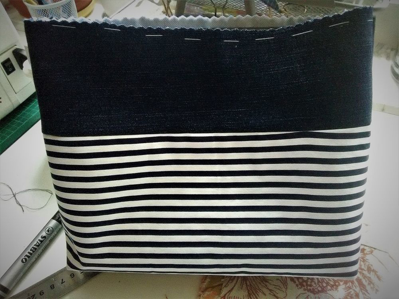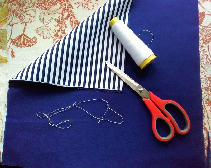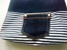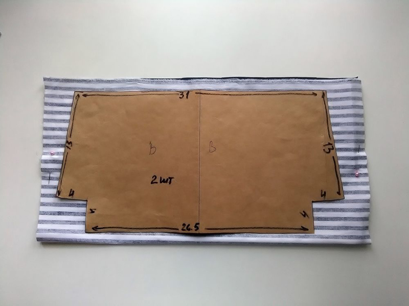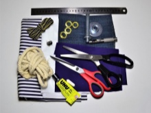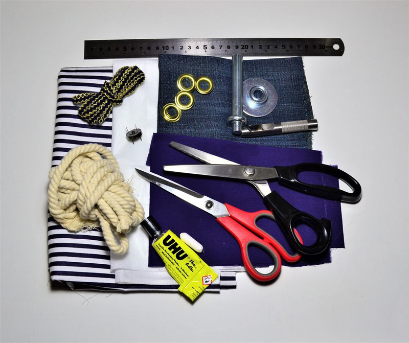 For the manufacture we need two types of fabric: denim and striped. As well as pattern, non-woven and sewing accessories.