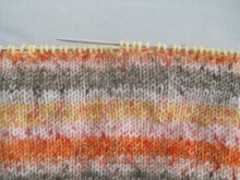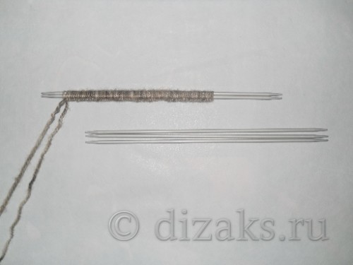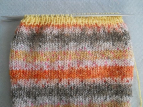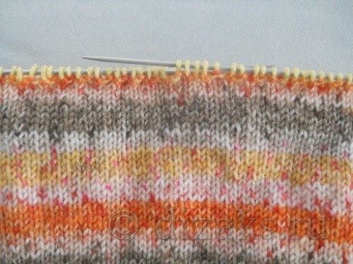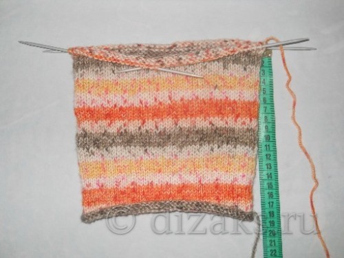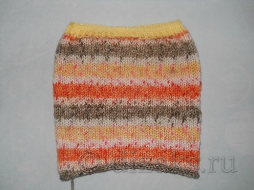 Knitting begins with 80 loops, which are evenly distributed over 4 knitting needles. To the required length, the pattern is knitted by the front satin, after which the color is changed and the elastic is knitted.