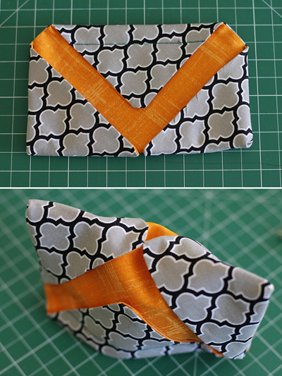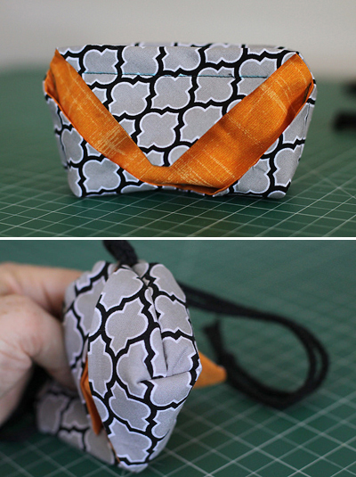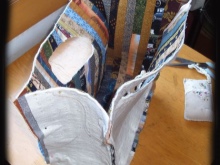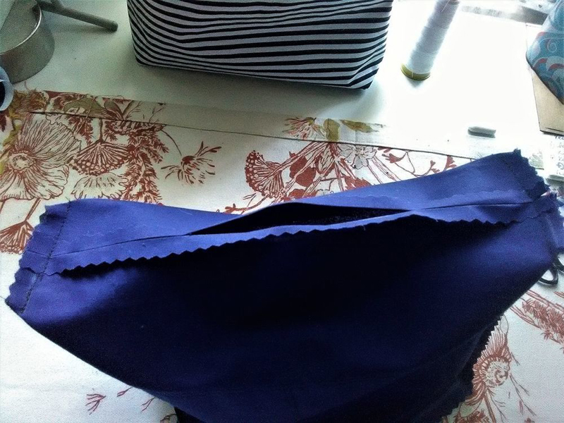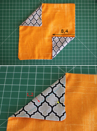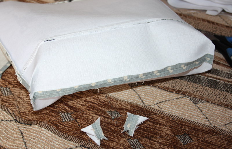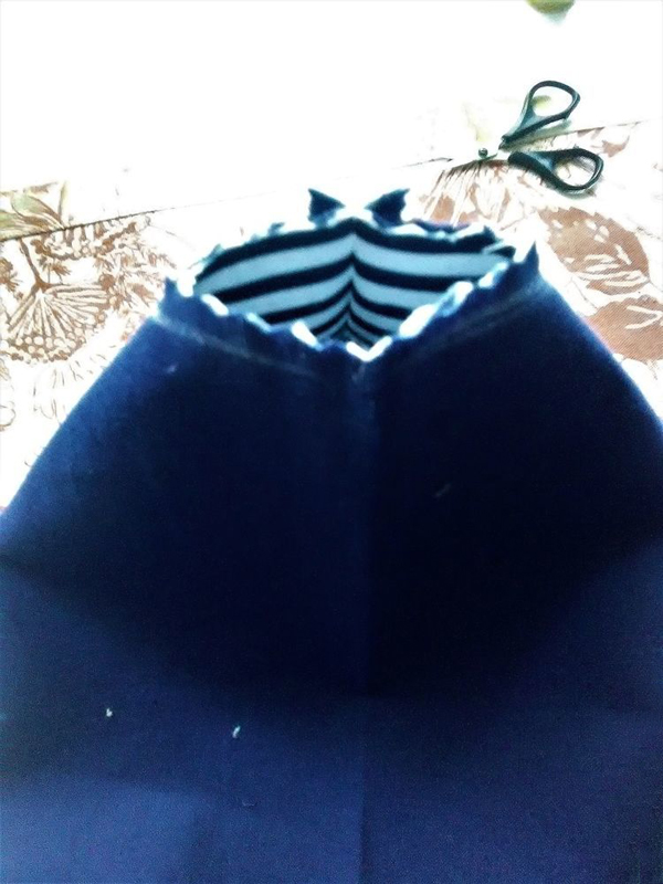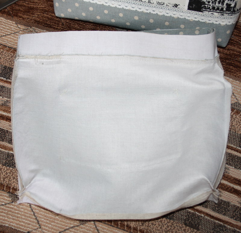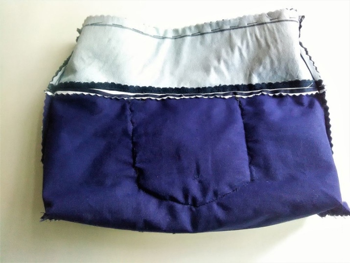 - Step 4 - grind the outer part. Sew side seams and make corners so that the bottom of the bag has a shape.