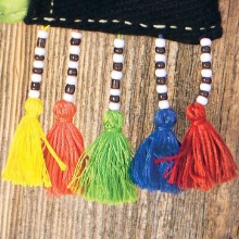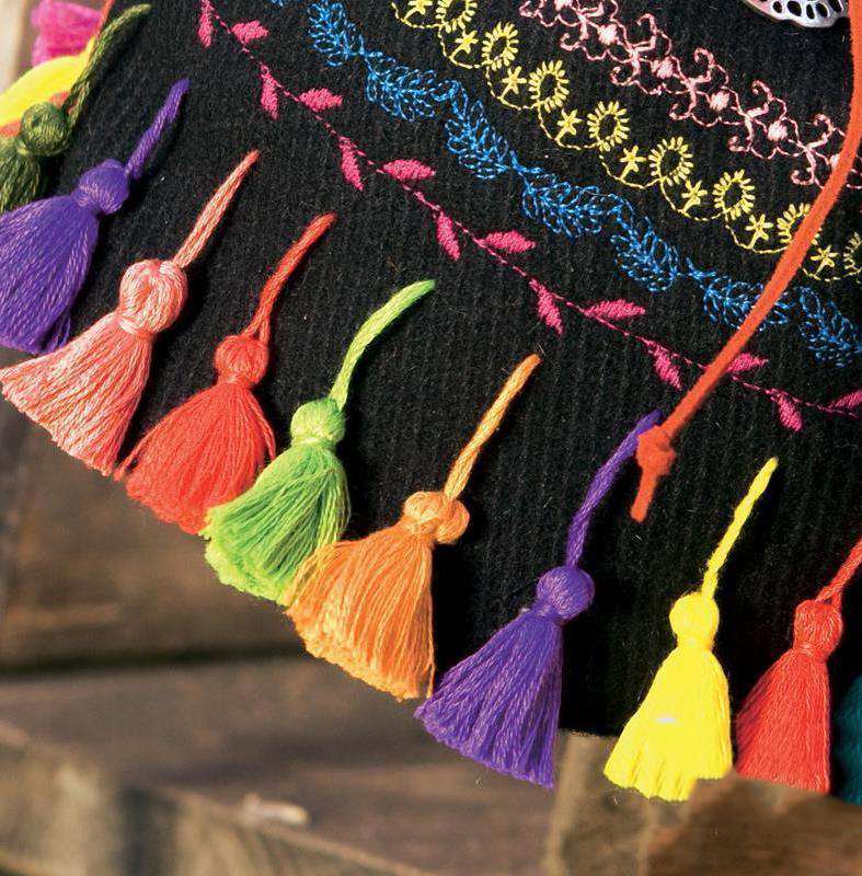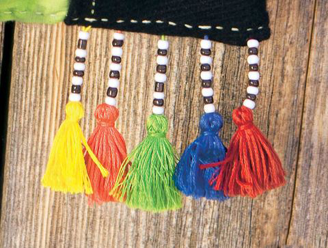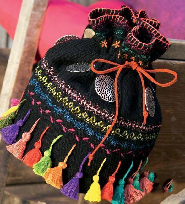 - Handmade items often carry an ethnic nuance. So, from the usual bag-sack made of black fabric, adding fringe, multi-colored patterns and leather ribbons turns out an accessory in the Bavarian (Tyrolean) national style.