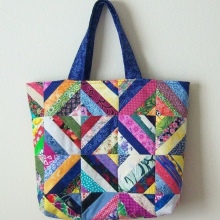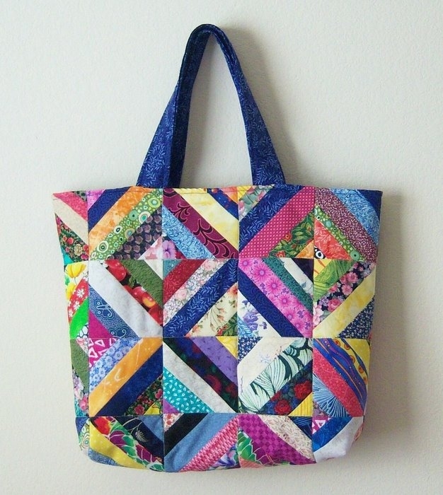 For those who do not know what to do with a lot of cloth scraps, but cannot throw them away, there is an excellent solution - to make a bag out of these scraps. It will not yield to the strength of the bag from a whole fabric, and you will not see such a design anywhere else. Shreds can be either standard square or rectangular, or triangular, trapezoidal, diamonds, and even thin stripes, stitched together and forming vertical or horizontal lines.