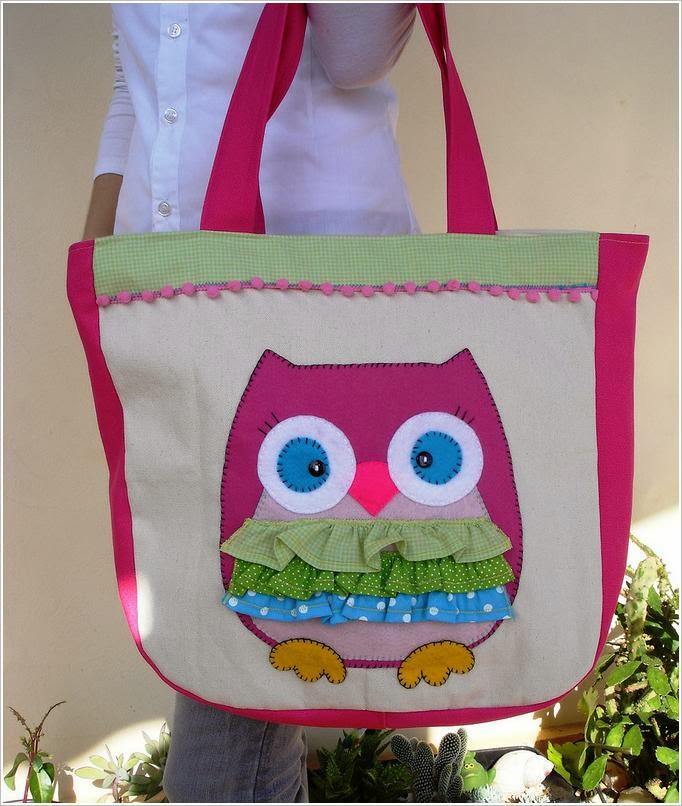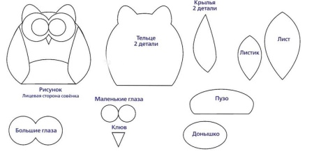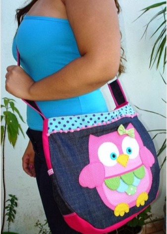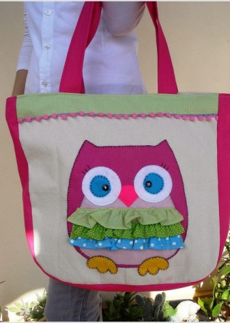 The original decision, which is best to wear in the summer and which will undoubtedly please the children. It is performed by stitching the front and back parts of the "owl", that is, completely repeating the shape of a bird, or using a fabric applique, the pattern of which is simple - the details are successively sewn one on top of the other.