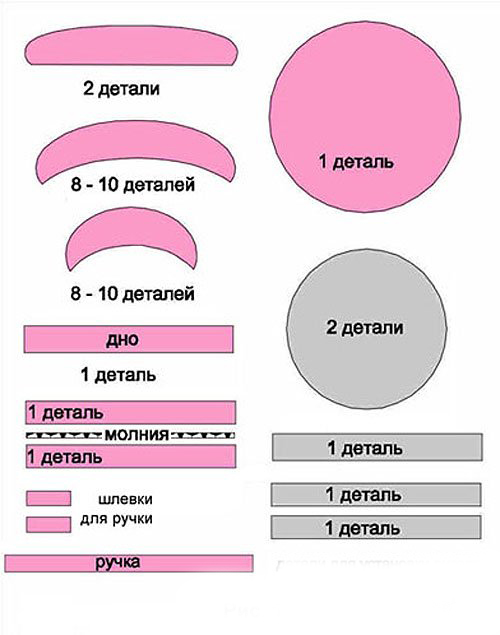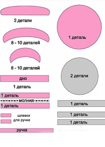 The simplest bag pattern is a round bag. It does not require a bottom for itself, and sometimes even the sides, and the sewing process consists of sewing together two symmetrical halves, followed by the addition of handles, fasteners, and various ornaments and ornaments. It is suitable for those who do not like to take a lot of things, because due to lack of a bottom, there will not be much to fit.