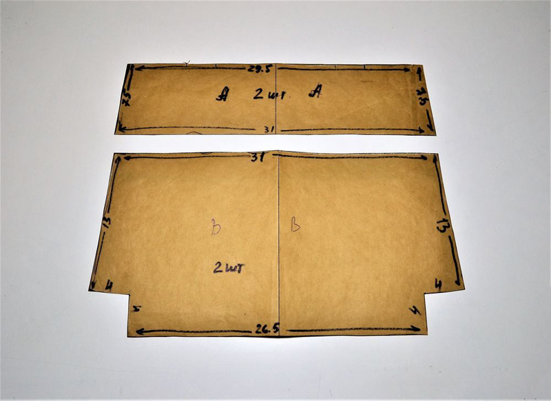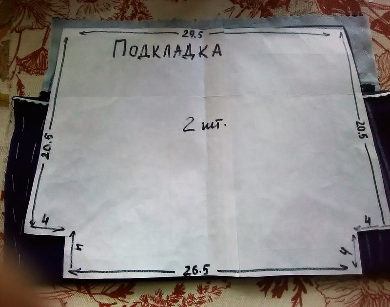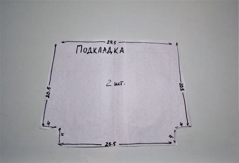 - Step 3 - lining. Its width will be equal to the width of the outer part, but the length increases by the height of the facing and 1 cm per seam.