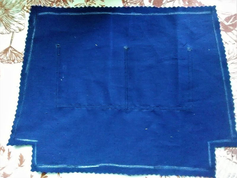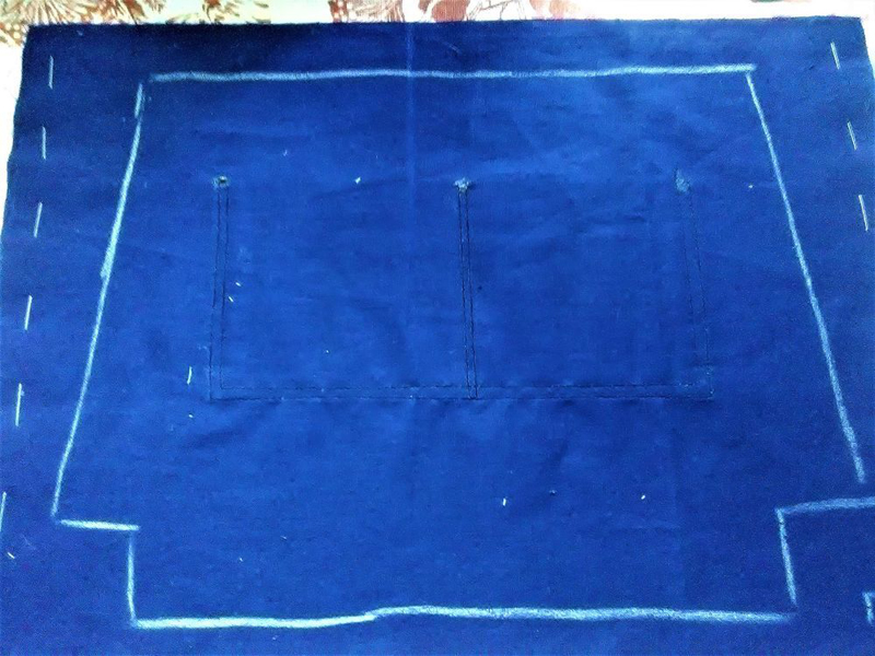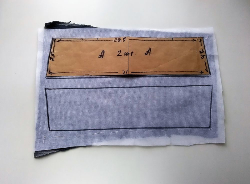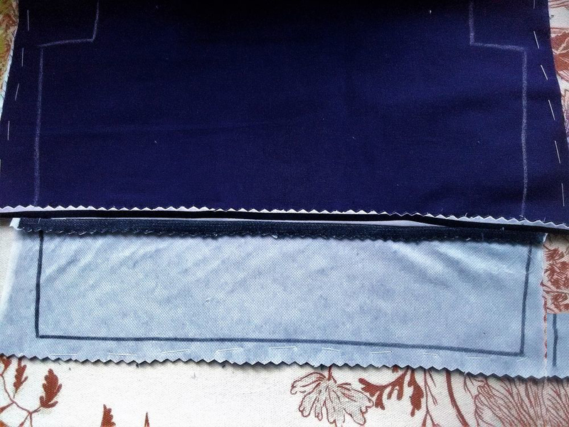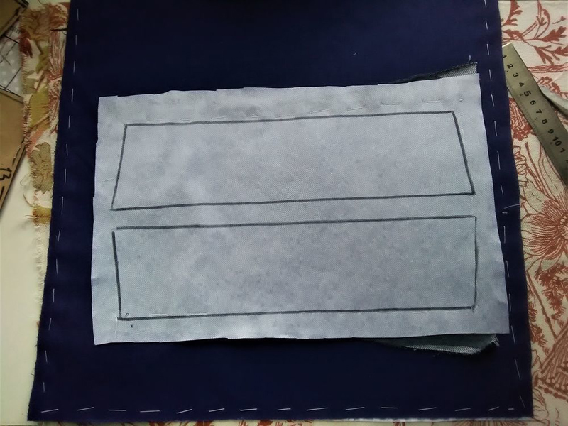 - Step 1 - modeling and cutting bags. Cut out with an allowance of 0.7 and glue dublerinom, interlining. After we grind two external parts and iron the seams.