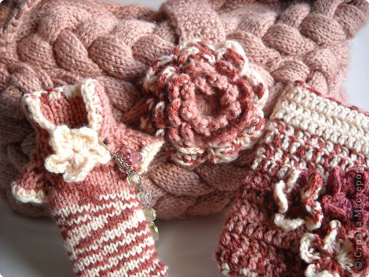 - Woolen things look very nice in combination with each other - for example, a knitted sweater and a small handbag to it. This model, made in soft pink color, will make the image airy and at the same time homely.