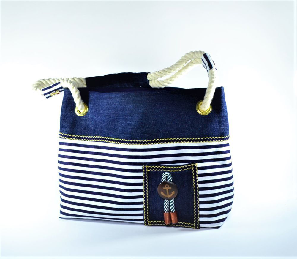 Pay attention to the denim fabric - with its help you can sew an interesting bag in a nautical style, and the material is very reliable. The fabric is also used in the manufacture of the lining of the future accessory.